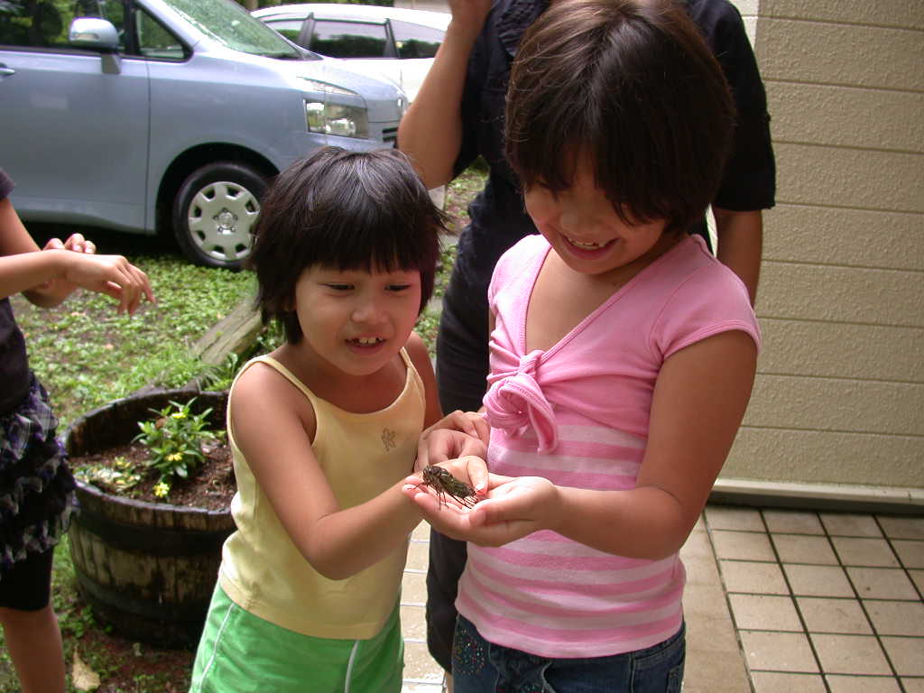 京都から来られたUさまご家族です。沼津で海水浴を楽しまれてから八ヶ岳へ来られました。サッカーゲームや、羽化したばかりのセミに夢中の娘さまたちです。